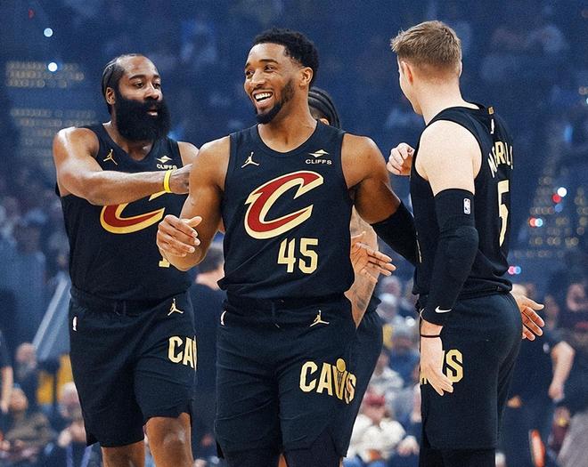 克神独木难支,骑士却高效合理运转,各司其职,众人拾柴火焰高!米球王狂轰32分+3篮板+4助攻+2抢断,末节独砍13分捍卫主场。据统计,此役过后,米切尔骑士生涯总得分来到6613分,超越拉塞尔(6588分)升至骑士队史第12位。同时,这是米切尔骑士生涯第100场30+,排在队史第2位,仅次于詹姆斯(324场)。哈登甘当绿叶,贡献18分+4篮板+8助攻,把阿伦喂得饱饱的,后者15中11怒砍26分+14篮板+2助攻+1盖帽的豪华数据。据统计,加盟骑士以来,哈登场均贡献18.4分+4.8篮板+8.6助攻,阿伦场均爆砍23分11板,命中率高达75%。