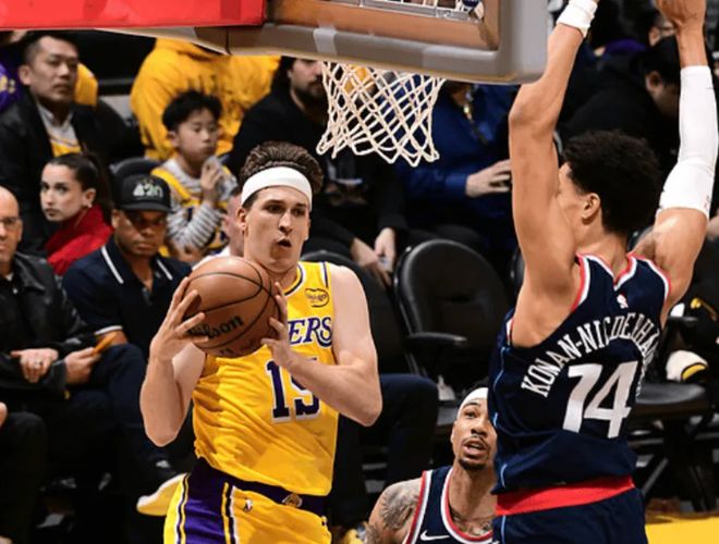 首发阵容方面,湖人队这边,全员健康,雷迪克教练排出的首发五人组为:马库斯-斯马特、勒布朗-詹姆斯、德安德烈-艾顿、奥斯汀-里夫斯、卢卡-东契奇;快船这边,比尔(左臀骨折)赛季报销、新援加兰(右脚扭伤)归期未定、博格丹诺维奇也因伤缺阵,首发阵容则为:科怀-伦纳德、约翰-科林斯、布鲁克-洛佩斯、德里克-琼斯、克里斯-邓恩。