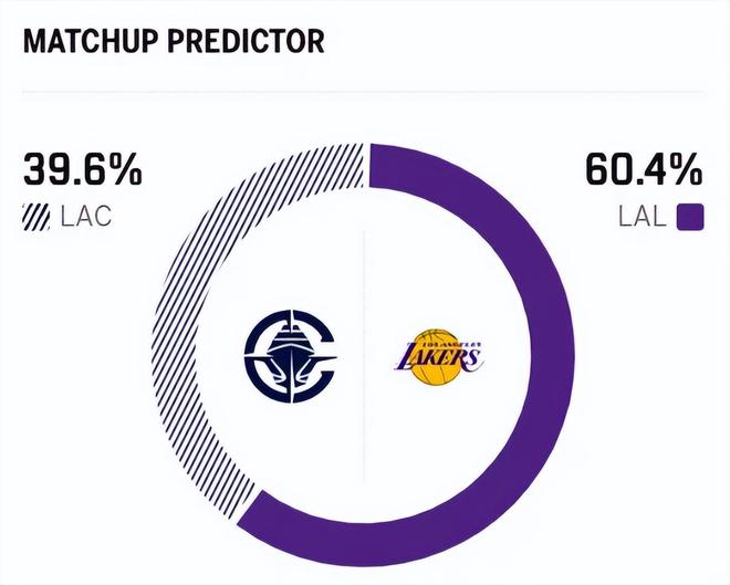赛前,美媒ESPN对本场比赛进行了胜率预测,快船队胜率仅有39.7%, 湖人胜率则高达60.3% ,差距非常明显。