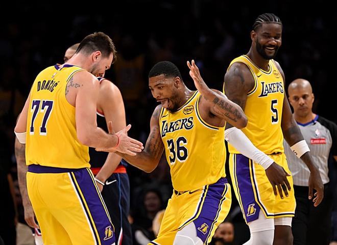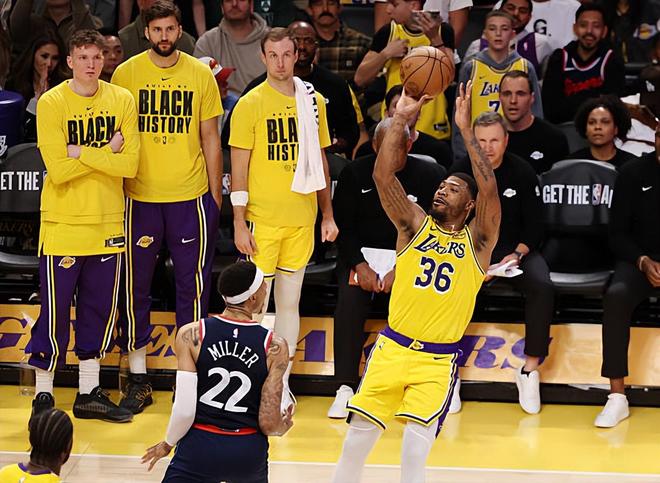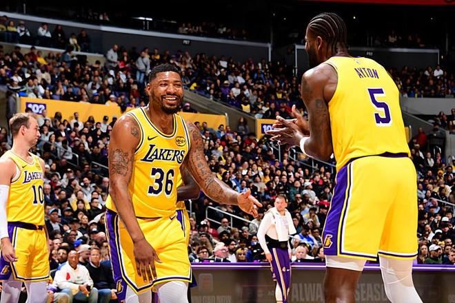 本场比赛中,湖人的先发后场大闸马库斯-斯马特(Marcus Smart)的表现还是相当不错的。斯马特全场出场29分29秒,投篮4中3,三分线外2中1,罚球2中0,得到了7分2篮板1抢断1盖帽的数据,还有1次失误和4次犯规,正负值为+1。斯马特在比赛前三节的存在感严重不足,他甚至没有完成1次出手,没有得到1分,仅贡献1篮板1抢断的数据。结果到了比赛最后一节,斯马特突然间大发神威,他投篮4中3,三分线外2中1,拿下了全部的7分,在进攻端起到了关键性的作用。不夸张地说,湖人能够在比赛最后一节稳住局面,其实也和斯马特突然间大发神威密切相关。当然了,斯马特在防守端的表现还是相当不错的,也确实是在防守端起到了很好的效果,这一点也还是值得肯定的。