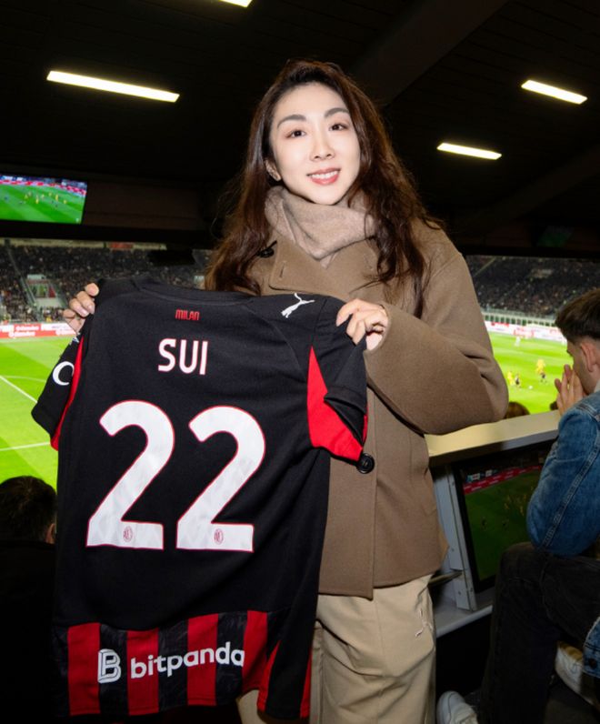 NFL传奇四分卫汤姆-布雷迪也到场观战,他还将亲笔签名的橄榄球掷向了球迷看台。中国花样滑冰奥运冠军隋文静也现身圣西罗,获赠了22号红黑战袍。