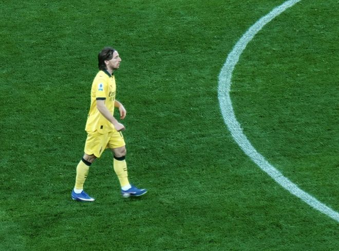 随后的比赛,1比1的比分并未被改写,但也不缺少精彩的故事。第80分钟,AC米兰主教练阿莱格里因为对法布雷加斯不依不饶,被红牌罚下。起因是法布雷加斯在场边拽住了准备抢球的萨勒马克尔斯。