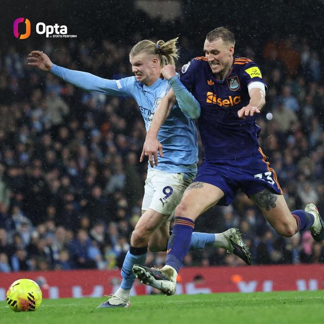 哈兰德对阵纽卡赢下12次对抗,为个人在五大联赛单场最高数据