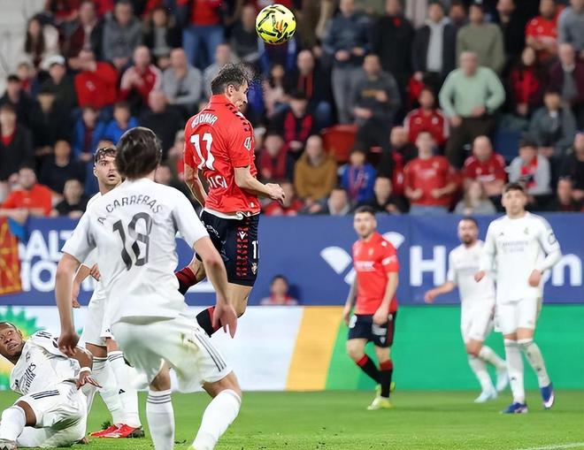 皇马在西甲豪取了8连胜,加上巴萨1-2输给了赫罗纳,皇马以2分的优势重夺领头羊位置,而且上一场在欧冠客场1-0力克本菲卡。但是客场挑战奥萨苏纳,皇马踢得非常吃力,上半场犯规送点,下半场虽然维尼修斯的进球抹平了比分,但随着劳尔-加西亚在第90分钟的进球绝杀,皇马1-2爆冷输球,如果巴萨本轮赢球拿到三分,就能重新回到榜首的位置。