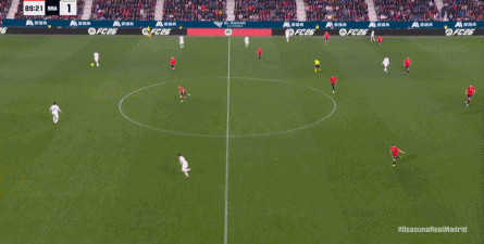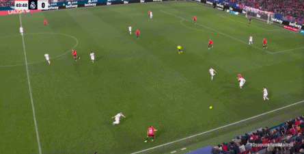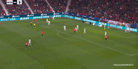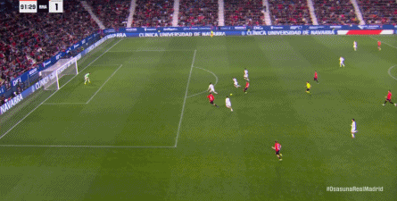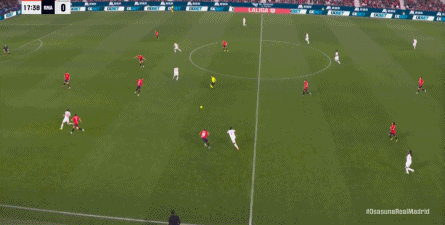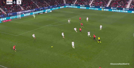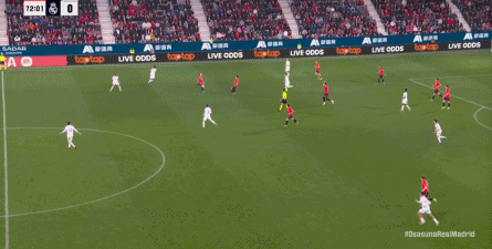 第78分钟,皇马在高位人盯人的时候出现问题,让奥萨苏纳打到了前场,而且再次打出了传中进攻的威胁: