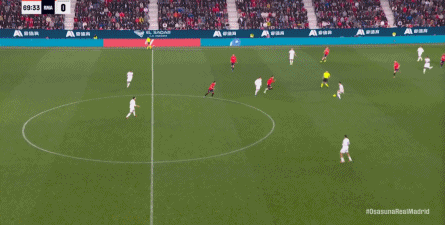 这是足球场上最残酷的现实,于是在第90分钟,奥萨苏纳在中线区域施加压力,让皇马出现了失误: