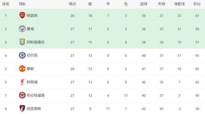 阿森纳赢下这场比赛之后,巩固了榜首位置。阿森纳拿到61分,排名第2的曼城56分。阿森纳在多赛一场的情况下,领先曼城5分,依然掌握争冠主动权。不过,阿森纳的争冠之路面临两场重头戏,能否赢下来或许将决定阿森纳的命运,这两场比赛分别对决切尔西和曼城。下一轮,阿森纳将在主场恶战切尔西。双方在首回合交手踢成平局。阿森纳要想赢下来恐怕不是一件容易的事情。
